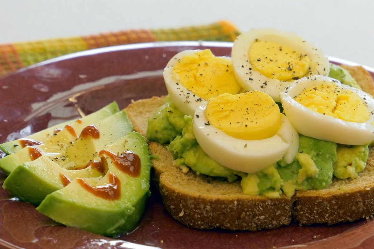 Unte el aguacate sobre su tostada. Cubra con huevos, sal y pimienta al gusto y albahaca.
