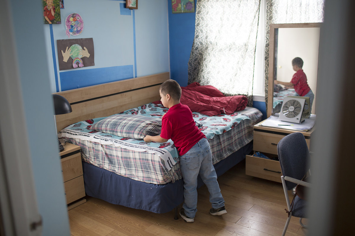 I’m a single mom with three other kids, so managing Emmanuel’s care isn’t always easy. He’s gone through occupational therapy at Hasbro Children’s. And they’ve even had a psychologist come to our house. He’s learning physical things like jumping and how to hop on one foot, but also strategies for him to handle going outside, meeting strangers, playing with other kids. So he’s learning to do things by himself when I’m not around.